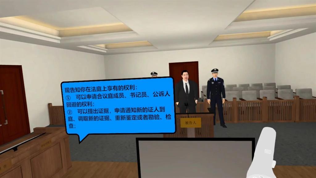 高度還原法庭上貪污受賄審判的全流程體驗(yàn),包括收受賄賂、庭審現(xiàn)場(chǎng)、送入監(jiān)獄等環(huán)節(jié),體驗(yàn)完成后將進(jìn)行答題測(cè)試。