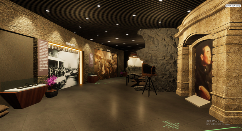 在虛擬黨史館里里將會有人工智能AI講解員帶領(lǐng)大家參觀學(xué)習(xí),走到不同區(qū)域會自動響起不同的講解詞,解決傳統(tǒng)展館無人講解的難點。走到特殊幾個歷史事件觸發(fā)程序,展館墻壁弧形大屏上會呈現(xiàn)該歷史事件的紅色影片。