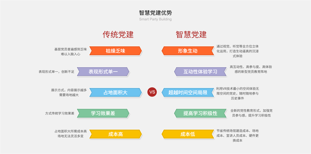 VR技術(shù)作為一項(xiàng)全球前沿技術(shù),VR+智慧黨建,它圍繞黨的核心思想,提煉黨的核心內(nèi)容,以虛擬現(xiàn)實(shí)技術(shù)為手段,虛擬現(xiàn)實(shí)設(shè)備為載體,打造科技型黨建,智慧黨建,成為新時(shí)期黨建工作的新趨勢(shì)。