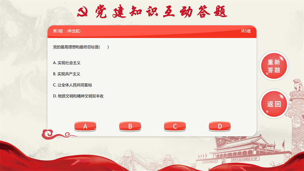 “黨建知識(shí)答題軟件”是隨著現(xiàn)代知識(shí)競賽黨建文化發(fā)展,一種知識(shí)競賽答題的新模式;可運(yùn)用在:黨建館、展廳、社區(qū)、黨群服務(wù)站、企事業(yè)單位等多種場合下,執(zhí)行更高的互動(dòng)展示成果,實(shí)現(xiàn)科技型應(yīng)用軟件發(fā)展技術(shù),發(fā)揮出黨建知識(shí)文化互動(dòng)問答效果。