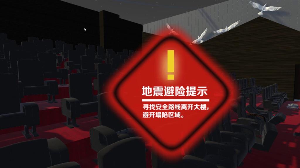 該VR軟件在電影院發(fā)生地震,首先要保持鎮(zhèn)靜,不能驚慌亂跑;隨機應(yīng)變躲到就近比較安全的地方,例如椅子旁邊、椅子下邊、墻根;如果離著安全出口非常近,可以沖到室外的安全地帶;地震停止后,在現(xiàn)場工作人的引領(lǐng)下,有序逃出,逃生時應(yīng)該保護(hù)好頭部。
