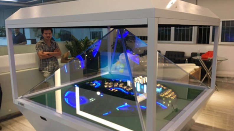全息幻影成像系統(tǒng)是用一種將毒品三維畫面懸浮在柜體實景中的半空中成像系統(tǒng)。全息幻影成像通過幻影成像對毒品實拍構(gòu)建三維模型的特殊處理,然后將拍攝的毒品影像或產(chǎn)品三維模型影像疊加進(jìn)場景中,構(gòu)成了 動靜結(jié)合的產(chǎn)品展示系統(tǒng)。不需要人們佩戴任何偏光眼鏡,在完全沒有 束縛下就可以盡情觀看3D幻影立體顯示特效給人以視覺上的沖擊,具有 強(qiáng)烈的縱深感。