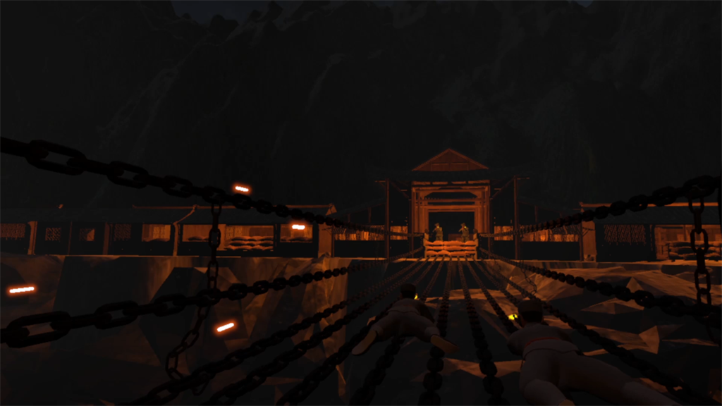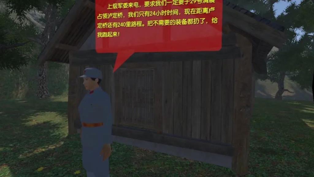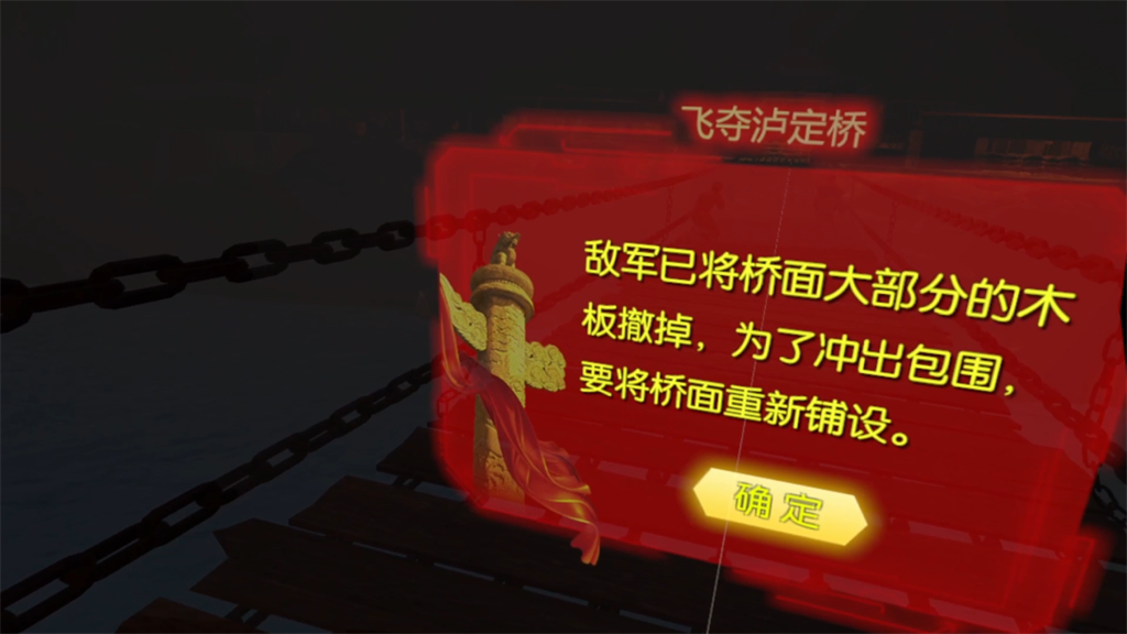 在VR飛奪瀘定橋體驗(yàn)系統(tǒng)2.0中,體驗(yàn)者載上VR眼鏡,穿越到1935年5月29日的那天夜晚,眼前便是瀘定橋,橋面腳下是鎖鏈森森,江水濤濤,稍有不慎就會(huì)遇險(xiǎn)落水。環(huán)顧四周,戰(zhàn)友們?cè)跇屃謴椨曛信η斑M(jìn)。拿起手彈,用力一擲,手榴彈便在敵方陣中應(yīng)聲爆炸,熱血澎湃的你恨不得射光所有的子彈,將敵人全部消滅,但是夜色昏暗,橋面不穩(wěn),沒有遮擋,你和戰(zhàn)友們只能抓緊鎖鏈,躲避子彈,緩慢前進(jìn)。