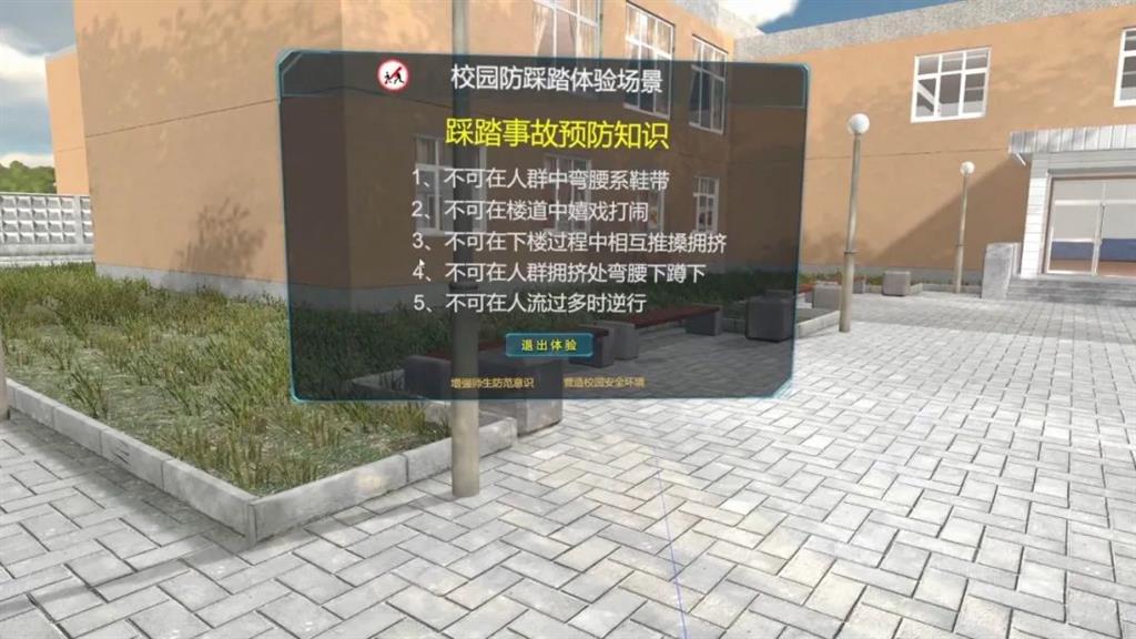 駿馬校園VR防踩踏體驗場景軟件通過VR情景式模擬+防踩踏知識的結合方式,有效增強了學生的安全防護意識,我們雖然無法提前預知災難,但可以做到防患于未然。在虛擬場景中,學生可以通過體驗踩踏事件的全過程,學會自我保護的技能。
