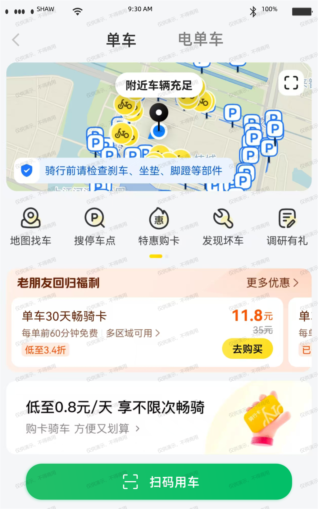 在指定區(qū)域內(nèi)騎行,感受共享單車的便捷與樂趣。