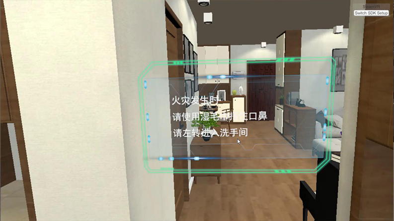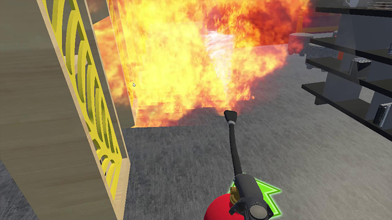 本系統(tǒng)基于三維建模、仿真引擎等技術(shù),配合HTC-viveVR外設(shè),模針公寓發(fā)生特大火災(zāi),消防戰(zhàn)士通過滅火并實施相應(yīng)的應(yīng)急措施救援體驗。
