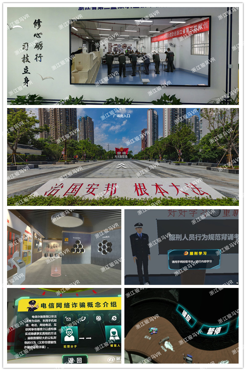 通過(guò)“VR禁毒館科普館”、“VR防詐騙體驗(yàn)”、“VR憲法廣場(chǎng)”、“VR廉政體驗(yàn)館”、“VR監(jiān)獄生活體驗(yàn)”、“浙江省第三監(jiān)獄實(shí)訓(xùn)基地VR場(chǎng)景”等系統(tǒng),讓社矯對(duì)象認(rèn)清危害行為的同時(shí)加深悔罪意識(shí),從而實(shí)現(xiàn)“心有所戒,行有所止”的教育效果。