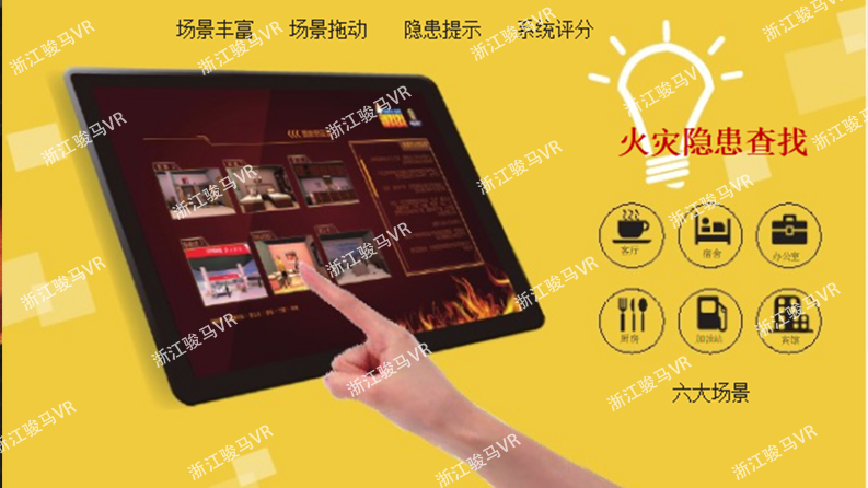 火災(zāi)隱患查找是基于一體機互動操作的消防安全教育軟件,結(jié)合了三維數(shù)字模型技術(shù),真實的還原各個火災(zāi)隱患場景,體驗者親身操作,分別找出廚房、客廳、賓館、宿舍、辦公室、加油站等場景中隱患點, 完成火災(zāi)隱患排查。